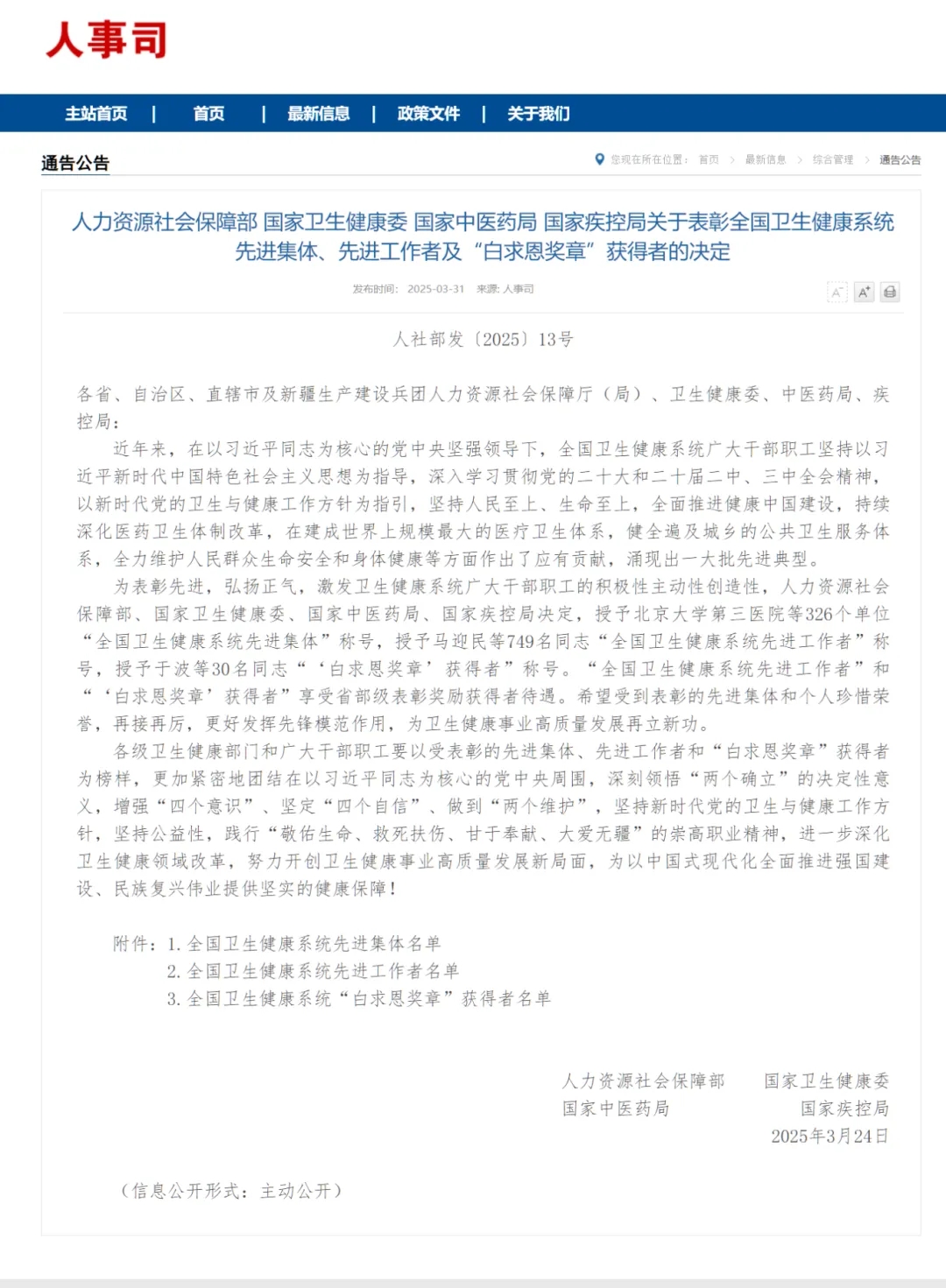近日,人力資源社會保障部、 國家衛(wèi)生健康委等四部委發(fā)布關(guān)于表彰全國衛(wèi)生健康系統(tǒng)先進集體、先進工作者及“白求恩獎?wù)?rdquo;獲得者的決定,我市1個集體、1人分別獲得全國衛(wèi)生健康系統(tǒng)先進集體、全國衛(wèi)生健康系統(tǒng)先進工作者榮譽稱號。f6r安康新聞網(wǎng)