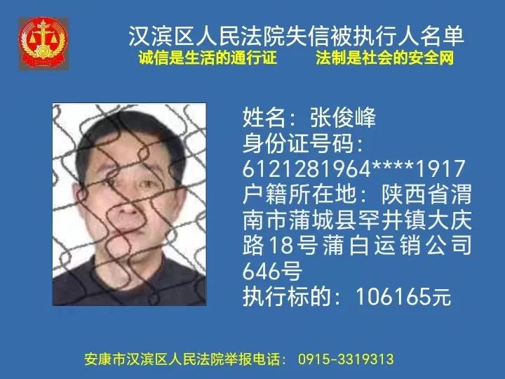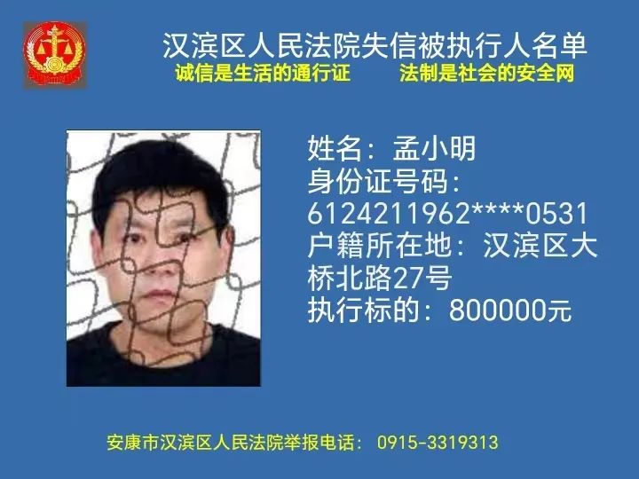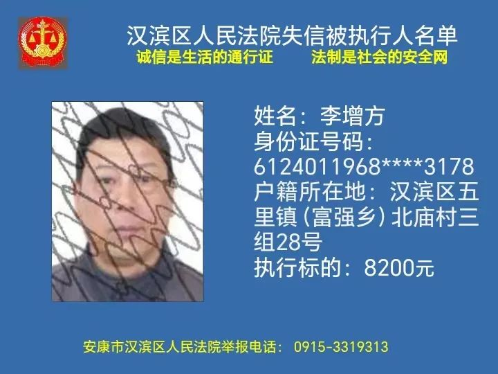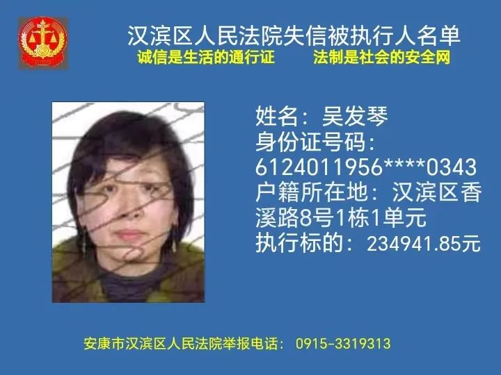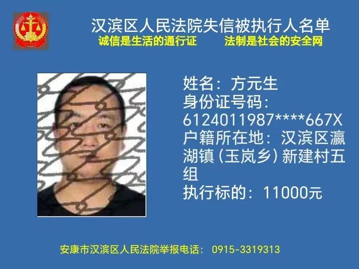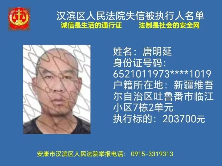 曝光失信 | 安康市漢濱區人民法院失信被執行人曝光名單(2023年第7期)