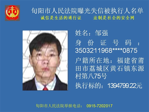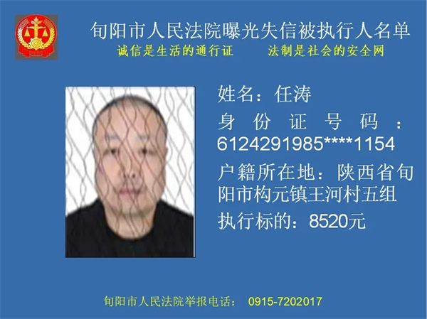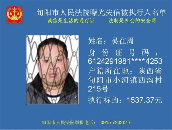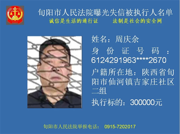 曝光失信 | 旬陽法院發布2024年第一期失信被執行人名單