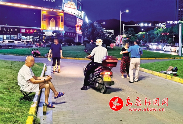 6月18日,有市民帶著孩子在安康城區西津漢江大橋(三橋)南頭街心綠地內玩耍,旁邊就是“小草微微笑 請您旁邊繞”的公益廣告牌(圖1)。不時還有摩托車、電動車從人行道經過(圖2),存在安全隱患。(記者 潘潤生 攝)qFt安康新聞網