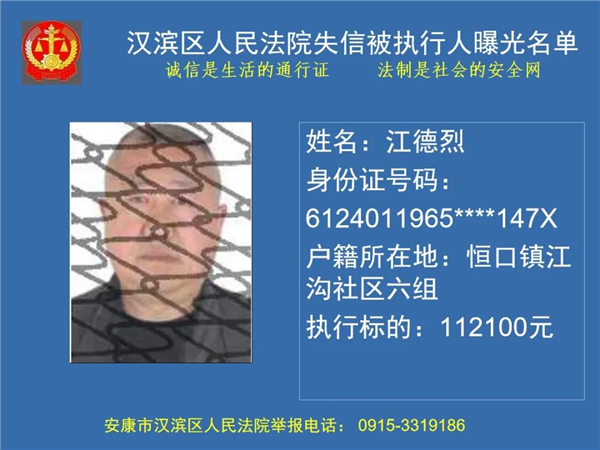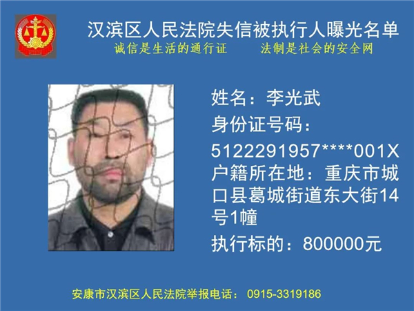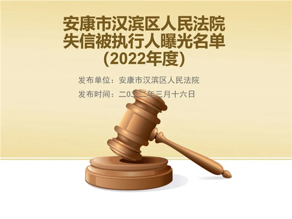 曝光失信 | 安康市漢濱區人民法院失信被執行人曝光名單(2022年第1期)
