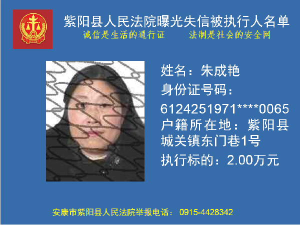 曝光失信 | 紫陽縣人民法院:關于敦促朱成艷履行法定義務的公告