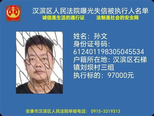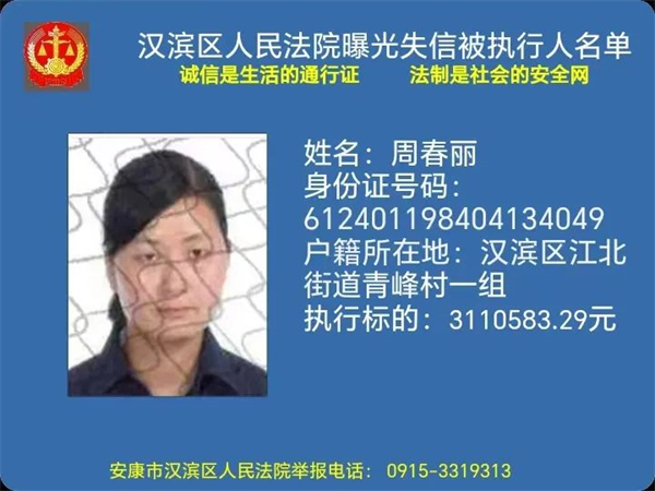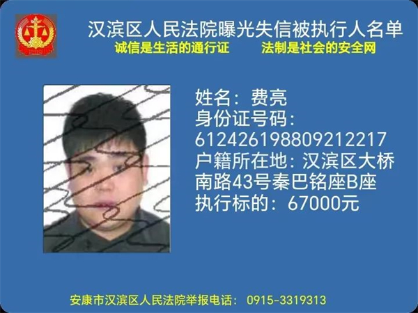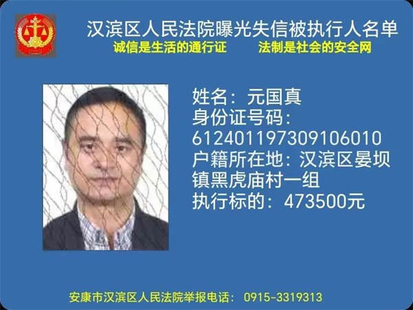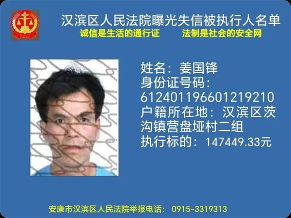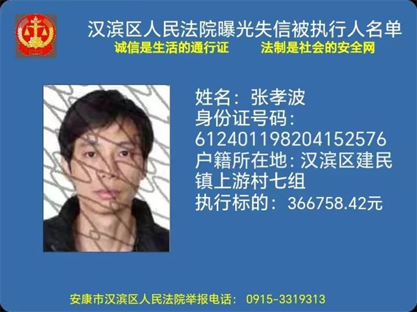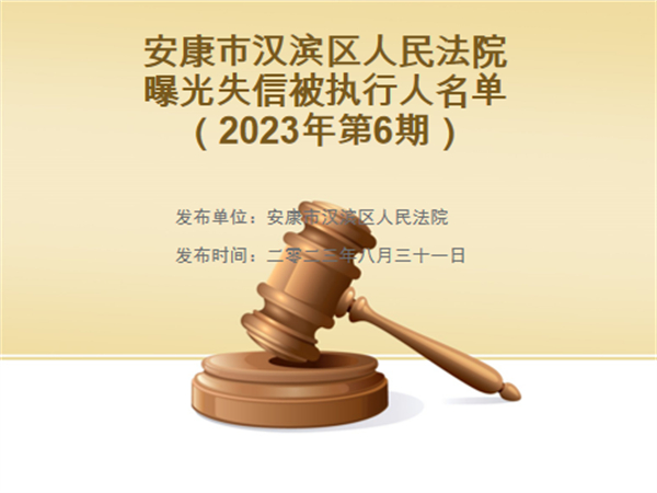 曝光失信 | 安康市漢濱區人民法院失信被執行人曝光名單(2023年第6期)