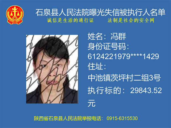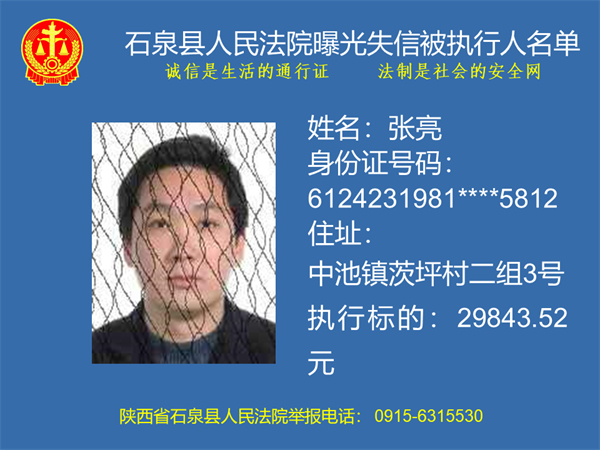 曝光失信 | 石泉縣人民法院曝光失信被執行人名單(2023年第六期)