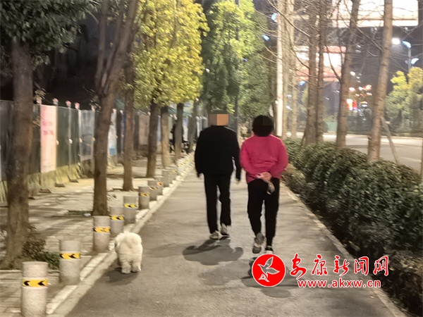 1月4日,在安康育才西路有市民遛狗不牽繩。記者 潘潤生 攝……