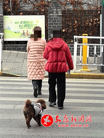 1月26日,我市中心城區某小區內有市民遛狗不牽狗繩。鄭時根 攝……