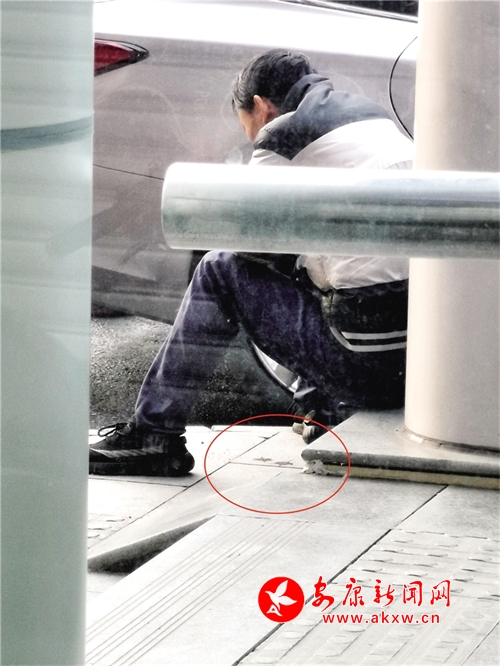 11月23日,有市民在安康城區江北大道地下通道出入口隨地吐痰。記者 潘潤生 攝……