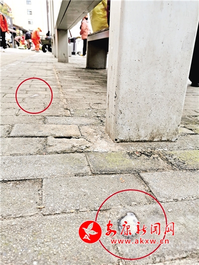 12月19日,安康江北大道市人民醫院公交站牌附近,存在隨地吐痰現象。記者 潘潤生 攝……