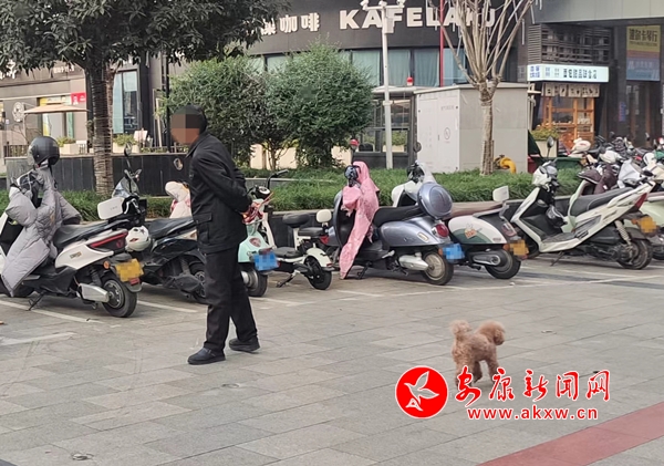 12月21日,在安康大劇院附近,有市民遛狗不牽繩。記者 潘潤生 攝……