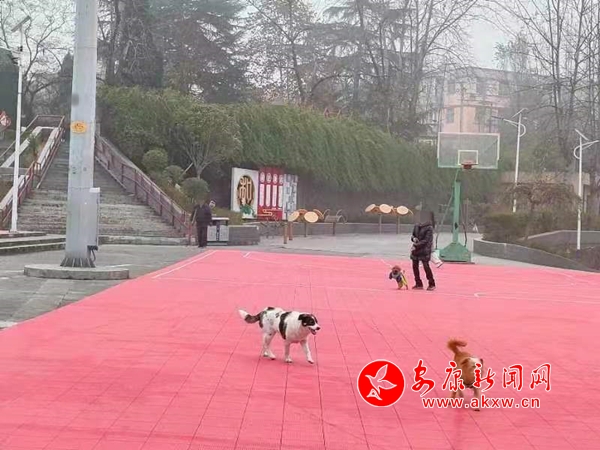 12月5日,中張嶺社區廣場遛狗不牽繩。……