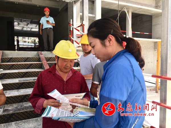 在高新區(qū)部分建筑工地,安康市和漢濱區(qū)人社部門通過(guò)擺放咨詢臺(tái)、放置展板、發(fā)放印制的宣傳資料、現(xiàn)場(chǎng)答疑等形式,對(duì)《社會(huì)保險(xiǎn)法》《工傷保險(xiǎn)條例》在維護(hù)職工權(quán)益方面的重要意義、工傷保險(xiǎn)參保繳費(fèi)政策、工傷認(rèn)定申辦程序以及工傷保險(xiǎn)待遇等方面進(jìn)行宣傳。