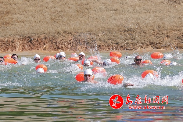 比賽現場,選手們你追我趕,在寬廣的湖中盡情體驗湖泊暢游的快感,享受著健身運動帶來的快樂。本次比賽場地選在瀛湖風景區翠屏島湖面,相較于傳統賽道比賽模式,天然水域上的比賽不但是游泳技巧的較量,更是勇氣、毅力、耐力的比拼。