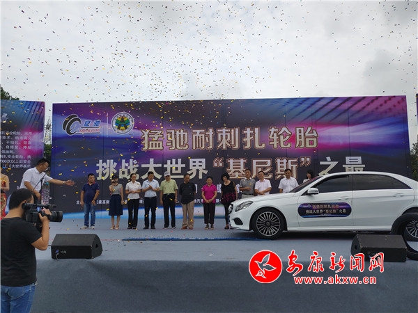 本網(wǎng)訊(記者 張世虎)單胎扎釘7700次后,且安全行駛202公里。8月28日,猛馳耐刺扎輪胎挑戰(zhàn)“大世界基尼斯之最”活動(dòng)在安康高新區(qū)舉行。在公證人員的公證下,猛馳耐刺扎輪胎現(xiàn)場(chǎng)成功完成挑戰(zhàn)。據(jù)了解,9月10日,大世界基尼斯工作人員將來安康為其頒發(fā)挑戰(zhàn)證書。