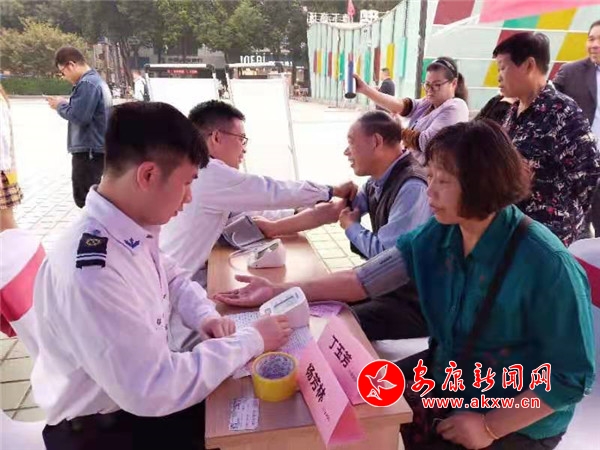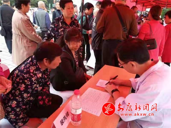 救心義診活動開始后,參展醫(yī)院工作人員現(xiàn)場發(fā)放宣傳單,提供專家義診咨詢,并為市民免費測血壓,測血糖,義診免費贈藥。活動現(xiàn)場測血壓、血糖,領取贈藥的群眾排起長隊,醫(yī)護人員主動攙扶行動不便的老人,耐心進行心血管疾病的防治及健康生活常識指導。
