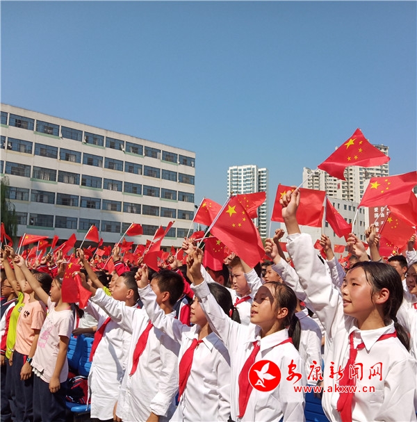 初二九班的王運(yùn)城作為此次活動(dòng)中的旗手,他說(shuō):“今天,能站在這里我感到很自豪,明天就是祖國(guó)母親的生日,我們?cè)诖双I(xiàn)歌,祝愿祖國(guó)母親永遠(yuǎn)繁榮昌盛。”