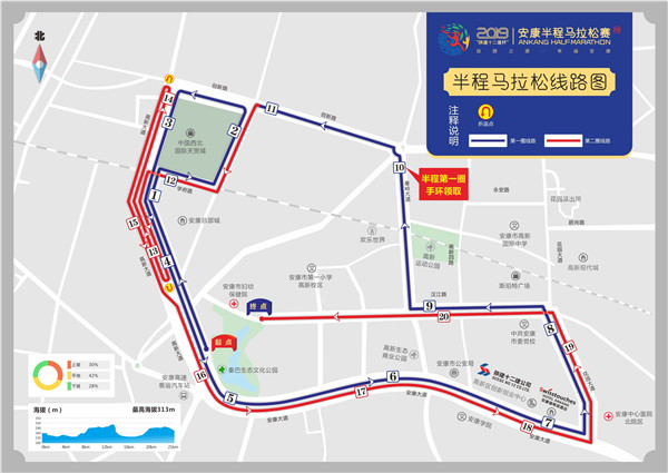 溫馨提示:半程馬拉松選手在10公里處需領取“第一圈完成標志手環”作為進入第二圈賽道分流唯一憑證。
