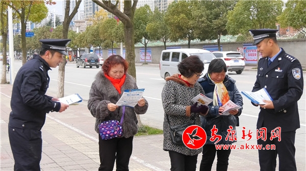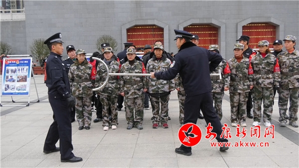在西城閣廣場,黨員民警聯合和江北派出所社區民警,采用擺放法制宣傳展板、發放宣傳單、法律咨詢服務等形式,向過往群眾講解法律、法規常識,宣講綜治平安建設的新部署、新目標、新要求和防盜搶、防詐騙、防暴恐等方面的安全防范知識。同時結合警種業務實際,支部還組織了警務實戰教官對社區保安、巡防隊員,就簡單實用的防衛、解脫、控制技法和鋼叉、警棍的使用進行了現場講授。eg5安康新聞網
