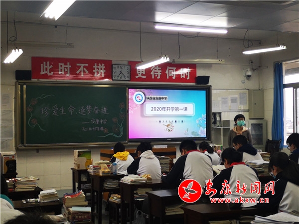 學生進教室后,班主任給他們上了“開學第一課”,對學生進行愛國主義教育;學習抗疫榜樣,增強社會責任感;通過文字、圖片、視頻等形式對疫情的知識進行全面的介紹,幫助他們更深刻地認識;對孩子們的學習方法和技巧以及后期復習備考的心理輔導等進行宣講。QbV安康新聞網