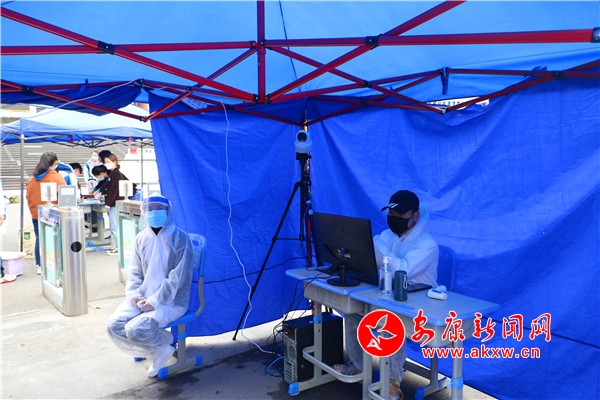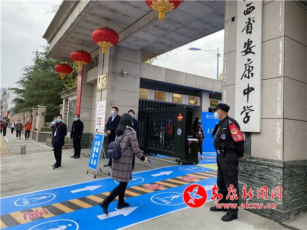 在高新中學校門口,安保人員、新冠肺炎疫情防控人員及公安、防疫人員早已定點就位,并逐一對入校的學生進行防控檢查。QbV安康新聞網