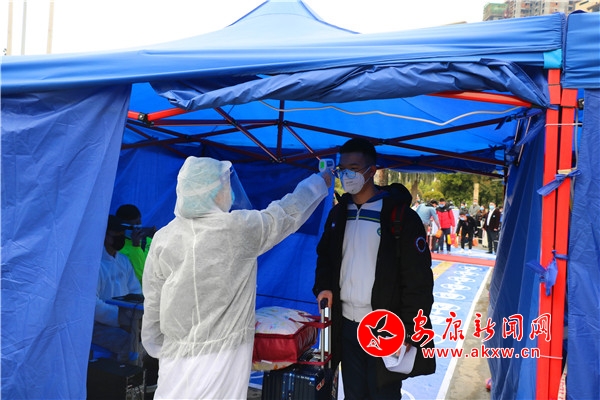 本網訊(記者 張世虎 李隆均 實習記者 雷文鈺)“你的體溫正常,請有序進入校園。”在經歷了漫長的假期后,3月30日,安康中學1000余名高三學生錯時分流走進校園開學復課,沉寂已久的校園又充滿了暖意和朝氣。QbV安康新聞網
