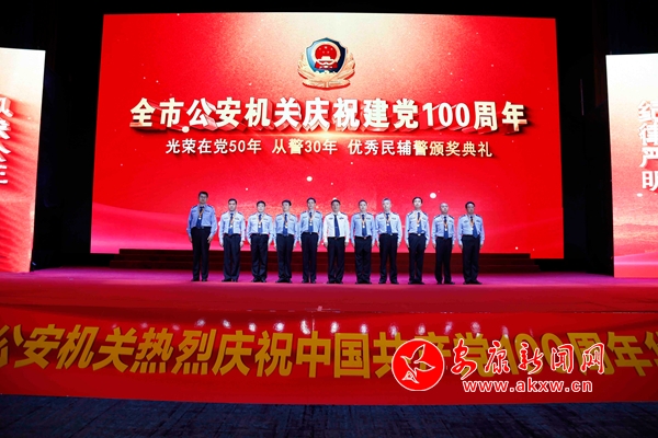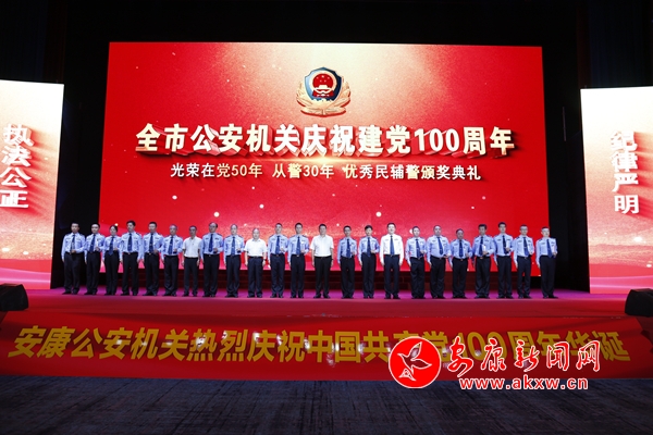 本次活動旨在全面展示全市公安隊伍教育整頓成果成效,大力弘揚公安英模精神,宣傳表彰隊伍中涌現(xiàn)出來的先進典型,凝聚警心、鼓舞士氣,激發(fā)廣大民警全力以赴做好保安全、護穩(wěn)定、抓改革、促發(fā)展各項工作熱情。活動分為安寧康泰、牢記使命、不忘初心三個篇章,一曲曲高昂的贊歌,一幕幕鮮活的畫面,一個個感人的故事,生動再現(xiàn)了中國共產(chǎn)黨建黨100年來,矢志踐行初心使命,一路披荊斬棘、篳路藍縷,錨定奮斗目標,創(chuàng)造輝煌開辟未來的壯麗詩篇;形象展示了安康公安機關(guān)和廣大民輔警牢記初心使命,服務(wù)中心大局,扎實推進黨史學習教育和公安隊伍教育整頓,忠誠履職,砥礪奮進的良好形象。活動中,與會領(lǐng)導(dǎo)向優(yōu)秀民輔警頒發(fā)了獎杯,向“光榮在黨50年”代表頒發(fā)了勛章,向“從警30年”代表頒發(fā)了紀念章。