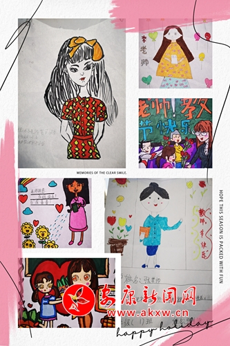 為慶祝第37個教師節的到來,漢濱區五里鎮五里小學的學生們用手中的畫筆,描繪出了他們眼中老師的模樣,同時也送去了深深的節日祝福。d8Z安康新聞網