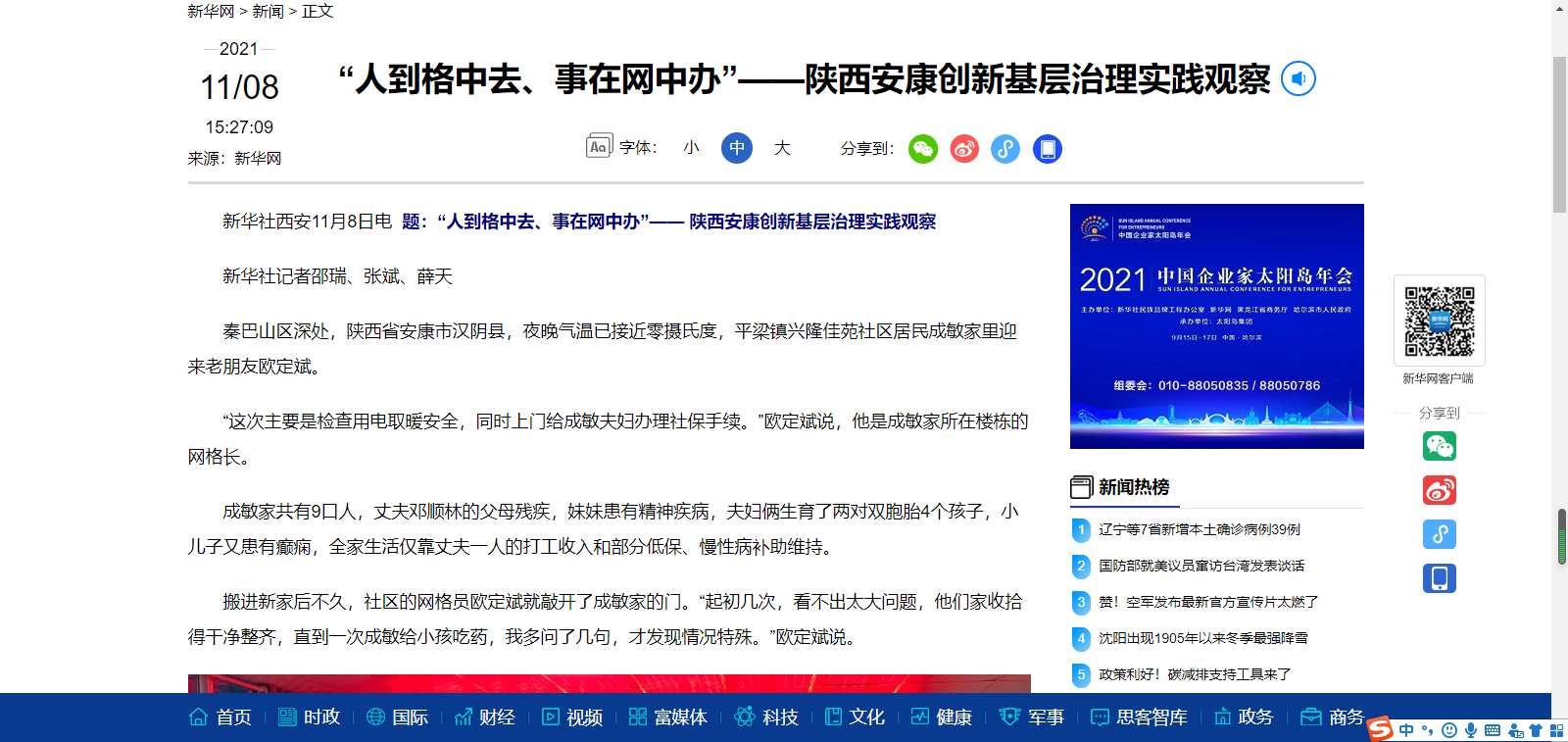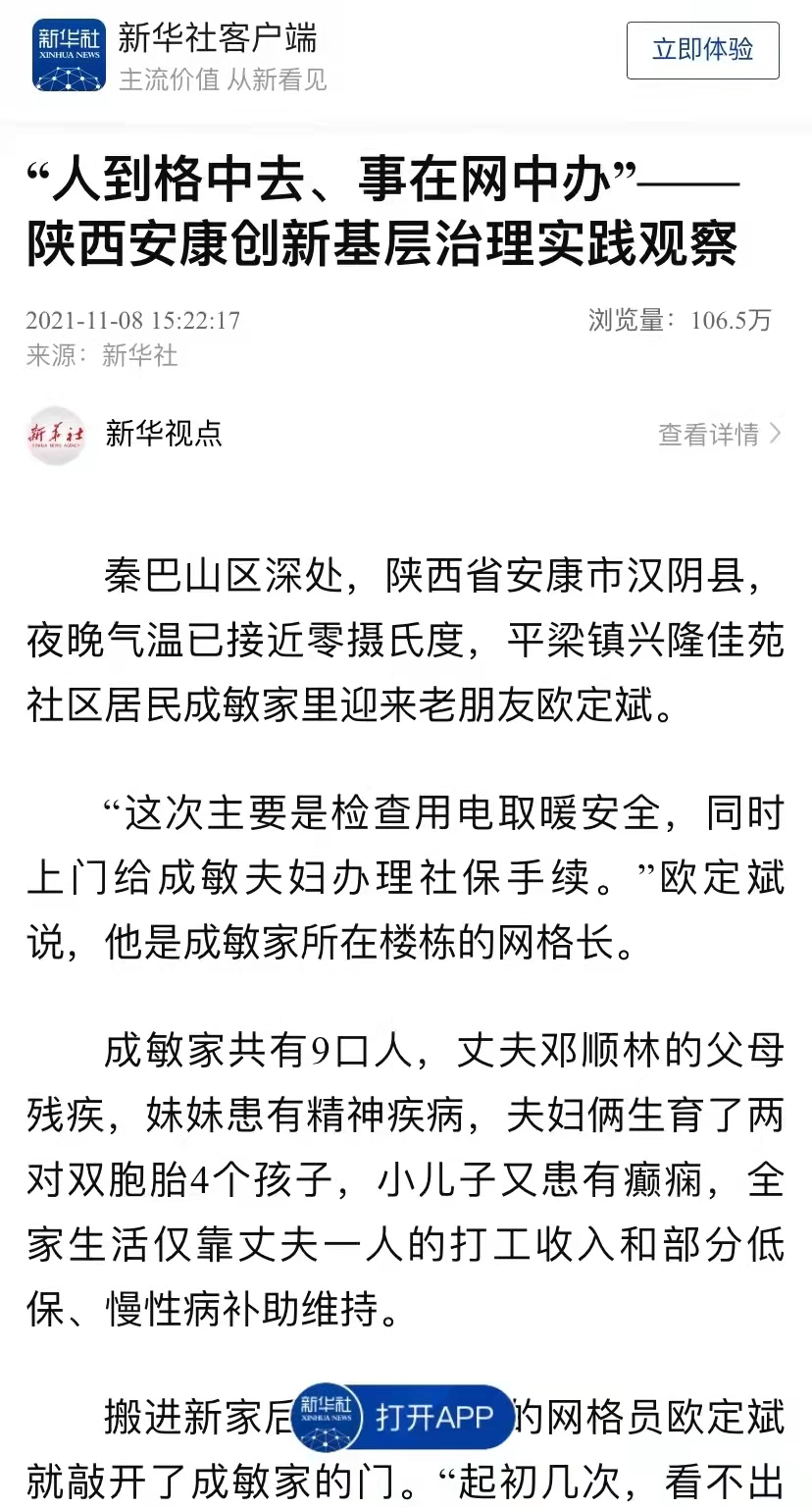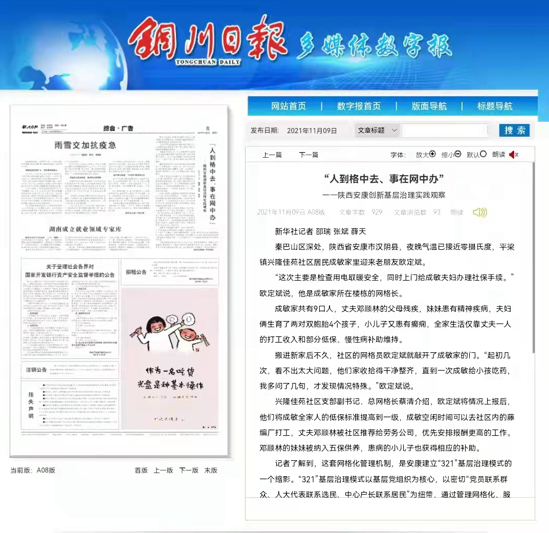 安康“321”基層治理模式受到新華社等多家媒體關注