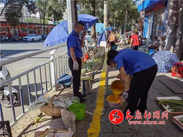 6月24日,記者來到江北大道安康農商銀行(勞動支行)附近,在現場記者看到,安康市城市管理執法局漢濱分局關廟執法大隊相關工作人員正在針對張溝橋路段臨時攤位線毀損問題進行及時補劃,同時針對擺攤戶進行全國文明城市創建宣傳,并提出相關經營要求,要求商戶不得越線經營、不得影響行人通行及交通安全,自覺維護臨時攤點周邊的環境衛生、秩序。“針對張溝橋路段附近村民自產自銷農產品流動經營叫賣現象,為規范管理張溝橋便民市場經營秩序,方便附近居民生活出行,我們于今日對流動的商販攤位進行劃線規范,劃線規范后,對不遵守相關規定出線占道經營,影響行人通行及交通安全的行為,我們將依法給予相應處罰措施。”安康市城市管理執法局漢濱分局關廟執法大隊綜合股股長陳超表示。