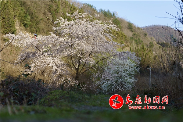 本網訊(記者 李俊 實習記者 卜昊天)近日,漢濱區晏壩鎮漫山的野生櫻桃花在和煦的春風中競相盛開。遠眺山林,從山腳到山頂次第綻放,山澗幽谷處處粉白,民居藏于其中,宛若世外桃源,起伏的山脈被一簇簇壓滿整個枝頭的櫻桃花所覆蓋。