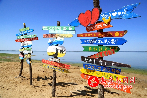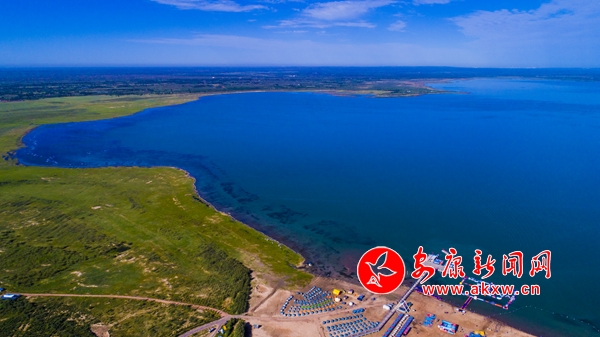 如今的紅堿淖煙波浩渺、水天一色、成群的遺鷗在這片廣袤的水域自由翱翔。從天空俯瞰,猶如一顆奪目的藍寶石被周圍被綠色的草甸包裹著,游艇飛馳在湖面上,沙灘上游人自在、悠閑、愜意。