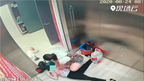 老人突發心梗暈倒電梯內 年輕媽媽放下懷中嬰兒緊急施救