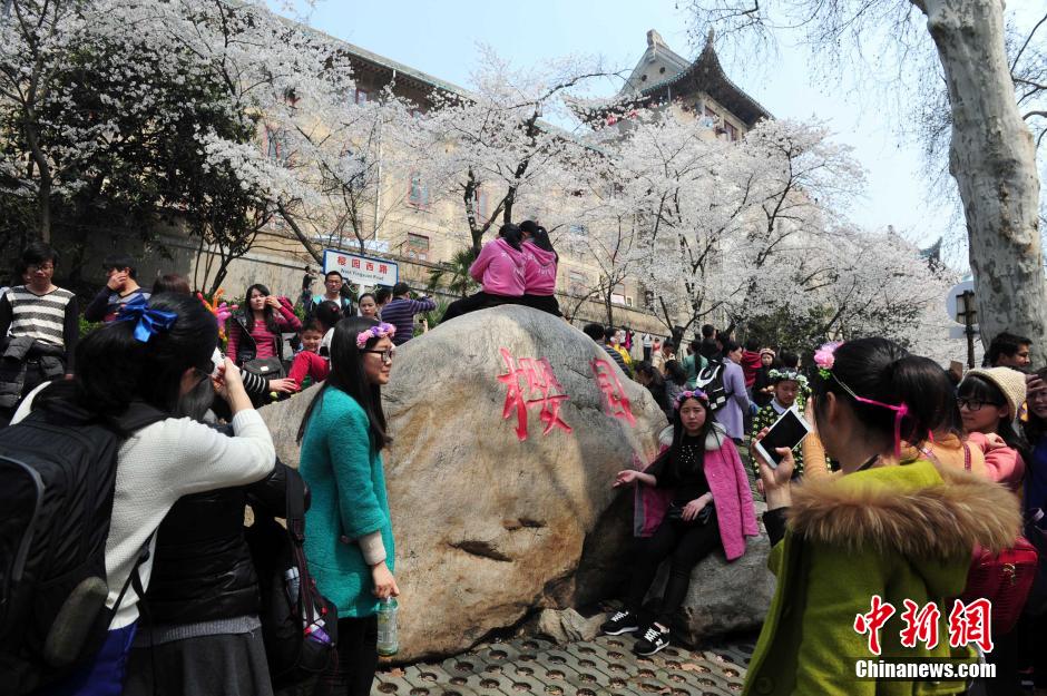3月21日,武大櫻花盛開游客如織。當日,武大櫻花盛開的首個雙休日。長約200米的櫻花大道上1000多株櫻花競相綻放,吸引著數萬游客,使寧靜的校園變成了熱鬧的公園。中新社發張暢 攝Suf安康新聞網