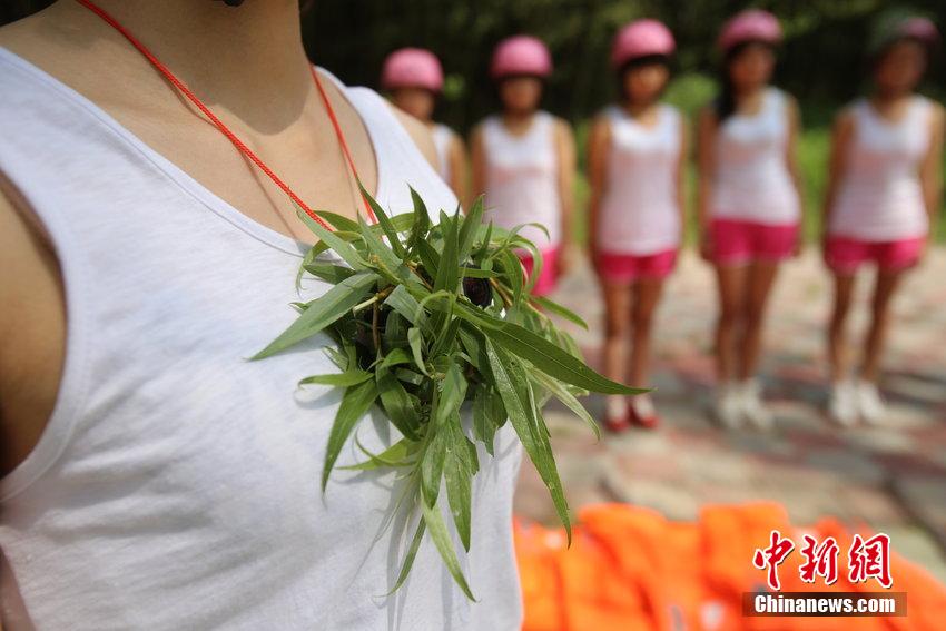 4月29日,河南省三門峽市女子漂流救援隊員佩戴偽裝成花草的視頻記錄儀,對漂流河道進(jìn)行安全檢查。該視頻記錄儀可放置在頭頂對全身進(jìn)行監(jiān)控、也可以放置在胸部、下身等處對局部進(jìn)行監(jiān)控。據(jù)了解,這種裝備是為了防止少數(shù)故意落水的男游客,對女救援隊員動手動腳的不文明行為。圖片來源:CFP視覺中國3Up安康新聞網(wǎng)
