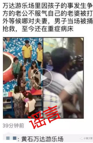 “求真”欄目記者發現,不止湖北黃石,湖南湘潭、益陽以及山東煙臺都曾傳出“萬達廣場發生打架捅人事件”的消息,各地網警都進行了辟謠。9月6日,湘潭高新公安通過官方微博表示,“經核實,湘潭萬達廣場并未發生網傳的‘游樂場捅人事件’,警方也未接到此類報警”。