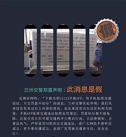 9月14日,蘭州交警通過官方微信公眾號發布澄清聲明:我們從來沒有發布過以上內容的消息,也從來沒有出臺過任何相關政策,手機APP處理交通違法應按照處罰規定,罰款扣分都不能免除。3JT安康新聞網