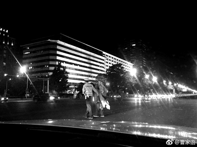 昨天晚上,一名網友在網上分享了自己目睹的暖心一幕,“就在剛才,長安街東單東面的十字路口,交警攙扶著一位穿著破破爛爛的流浪老人過馬路。老人走得慢,綠燈亮起后,交警雙手舉起示意司機停車再等等,繼續攙扶老人過馬路。”爆料網友同時還發布了多張事發時的照片,照片中一位交警攙扶著佝僂著的老人,一步步向馬路對面走去。