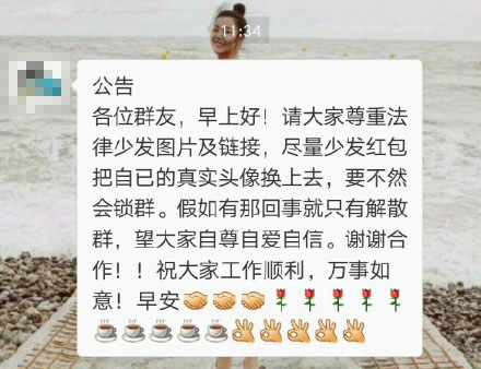 【傳聞】有桂林網(wǎng)民表示收到了一條“中國網(wǎng)絡監(jiān)控在清理整頓,要求微信群友將頭像更換為個人真實頭像,否則會被鎖群,群成員的手機號也會被控制”的消息。