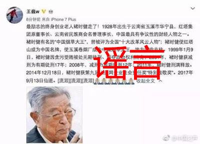 【傳聞】中國金融博物館理事長王巍發(fā)布微博稱,知名企業(yè)家褚時健去世,該消息一出,引發(fā)網(wǎng)民大量轉(zhuǎn)發(fā)。