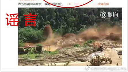 【傳聞】有網(wǎng)民在微博上發(fā)布一段名為“西雙版納山洪爆發(fā),瞬間淹沒村莊”的小視頻。