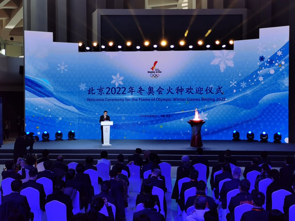 ⬆️北京市副市長、北京冬奧組委執行副主席張建東在火種歡迎儀式上發言。ban安康新聞網