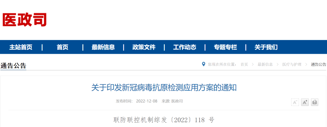 (五)各省(自治區、直轄市)衛生健康部門要制定抗原檢測陽性結果報告相關規定,通過開發APP小程序、完善信息系統功能等方式,方便各類人員進行抗原檢測結果報告,要將報告具體途徑通過多種方式向社會公布。nG7安康新聞網