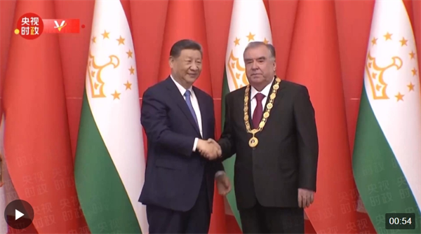 習近平指出,今天我們舉行隆重儀式,向中國人民的老朋友——塔吉克斯坦總統(tǒng)拉赫蒙閣下頒授中華人民共和國對外最高榮譽勛章——“友誼勛章”。這是中國首次在境外頒授“友誼勛章”,是為表達中國人民對拉赫蒙總統(tǒng)和塔吉克斯坦人民友好感情作出的特殊安排。
