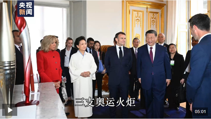 三個多月前,正在法國進行國事訪問的習近平主席贈送給馬克龍總統北京雙奧火炬,馬克龍總統則以巴黎奧運火炬回贈。習近平主席說:“法國是一個體育強國,我衷心祝愿巴黎奧運會取得成功。中方將派出高水平代表團赴法參賽。”