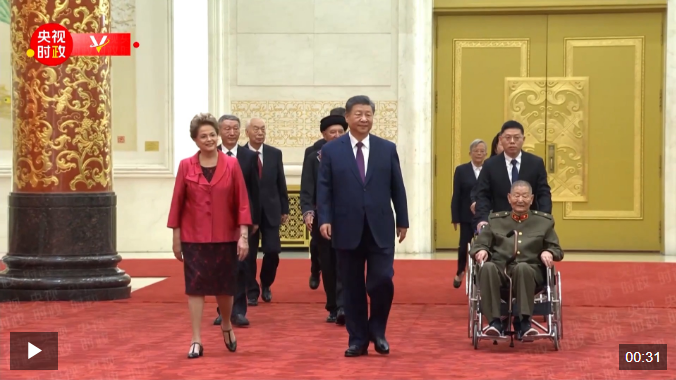 △獨家視頻丨習近平同國家勛章和國家榮譽稱號獲得者步入頒授儀式現場