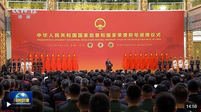 中華人民共和國國家勛章和國家榮譽稱號頒授儀式29日上午在北京人民大會堂金色大廳隆重舉行。中共中央總書記、國家主席、中央軍委主席習近平向國家勛章和國家榮譽稱號獲得者頒授勛章獎章并發表重要講話。習近平強調,偉大時代呼喚英雄、造就英雄。英雄輩出,黨和人民事業就會興旺發達、長盛不衰。各級黨委和政府要關心關愛英雄模范,推動全社會尊崇英雄、學習英雄、爭做英雄。希望受到表彰的同志珍惜榮譽、再接再厲,爭取更大榮光。hjy安康新聞網