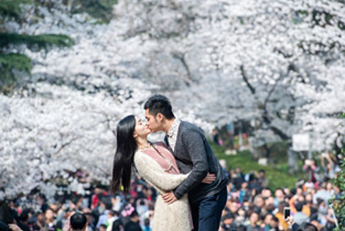 3月21日,武大櫻花盛開游客如織。當日,武大櫻花盛開的首個雙休日。長約200米的櫻花大道上1000多株櫻花競相綻放,吸引著數萬游客,使寧靜的校園變成了熱鬧的公園……