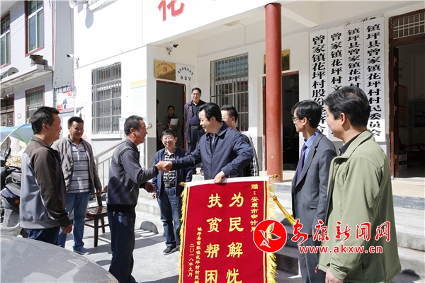 安康新聞網訊(記者 陳俊 通訊員 成英豪)10月10日上午,得知包聯單位的領導帶領幫扶干部到村入戶幫扶,鎮坪縣曾家鎮花坪村的村民郜勝利專程為安康市審計局等市縣包聯單位送來錦旗,特地感謝該局五年多對花坪村的傾心幫扶。值得一提的是,郜勝利并不是貧困戶,但他從市審計局對花坪村的幫扶中享受到了黨和國家的好政策,從該局駐村工作隊的工作中感受到了幫扶干部一心為民的情懷。因此他特地在安康制作了錦旗,以表達身為花坪村民對市審計局等包聯單位的感激之情。pta安康新聞網