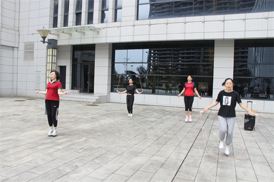 整場比賽分為“單人跳繩”、“雙人跳繩”、“集體跳繩”三個項目,以科室為單位自選項目,職工自由組合,在各項目規定時間內以完成數量多少決出名次。