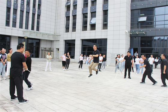 當然比賽中還有許多“小插曲”,有的選手鞋帶松了,有的選手繩子扭了,有的選手眼鏡掉了,有的選手被大繩打到疼得哇哇叫,但正是因為有了這些小插曲,才讓參與者的笑聲更響,讓這場比賽變得更生動有趣,也讓“快樂工作、幸福生活”這句話有了最真實的體現。