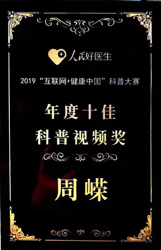 2021年 獲醫生云獎;獲“科普紅人直播賽十強”稱號